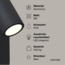 Metallrahmen. Schwenkvorrichtung zur Einstellung des Lichtstroms. Zwei LED-Lichtquellen, gemeinsamer und getrennter Beleuchtungsmodus. Produkthighlights Farbe: Schwarz Material: Aluminium Schutzart: IP 20 Spannung: AC 220-240 Leistung: 9 W Lichtstrom: 550 lm Farbtemperatur: 3000 K