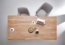 Hochwertiger Esstisch Utrecht aus massivem Akazienholz in naturfarben mit einer Größe von 240x100 cm. Die echte Baumkante und das U-Gestell in Schwarz verleihen dem Tisch einen modernen und natürlichen Charakter. Die Tischplattenstärke variiert zwischen 47 und 55 mm und die geschliffene, naturbelassene Oberfläche betont die schöne Maserung des Holzes. Ideal für ein stilvolles Esszimmer.