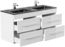 Badmöbel Ovation in Weiß Hochglanz vereint modernes Design mit hoher Funktionalität. Das Doppelwaschbecken aus Mineralguss in "Piano Black"-Optik bietet mit den Maßen 120x46 cm ausreichend Platz. Die hochwertigen Softclose-Schienen sorgen für ein sanftes Schließen der Schubladen und Türen. Die Montage erfolgt einfach durch Aufsetzen des Waschbeckens auf den Unterschrank. Vertrauen Sie auf die Qualität, die in Deutschland entworfen und direkt ab Werk geliefert wird.