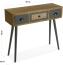 Der Versa Pandora Konsolentisch ist die ideale Lösung für Ihren Eingangsbereich oder Flur. Mit den kompakten Maßen von 79 x 30 x 90 cm und einem Gewicht von 9 kg bietet er ausreichend Platz für Schlüssel und Dekoration. Hergestellt aus Tannenholz, MDF-Holz und Metall in einer ansprechenden braun-grauen Farbkombination, vereint er modernes Design mit Funktionalität. Die drei Schubladen sorgen für zusätzlichen Stauraum.