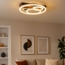 Diese moderne GLOBO Deckenleuchte für das Wohnzimmer (Modell 67265-55) mit Fernbedienung besticht durch ihr ansprechendes Design mit 4 Ringen in verschiedenen Größen (Ø48cm) in den Farben Schwarz und Braun. Mit der Fernbedienung können Sie die Lichtfarbe von warmweiß (2700 Kelvin) bis kaltweiß (6500 Kelvin) einstellen und die Leuchte dimmen. Die Memory-Funktion speichert die zuletzt verwendeten Einstellungen.