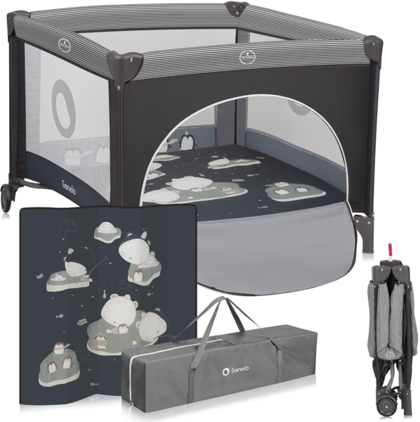lionelo Laufgitter BONNIE (Set), Große Fläche, Seiteneingang, leicht klappbar, Transporttasche