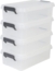 Praktisches 4er-Set Aufbewahrungsboxen von Iris Ohyama mit einer Kapazität von 4 L pro Box. Die transparenten Multi Boxen MBX-4 sind stapelbar und ideal für die vielseitige Aufbewahrung im Büro, zu Hause oder in der Garage. Jede Box ist mit 2 Clips ausgestattet, die den sicheren Verschluss gewährleisten.