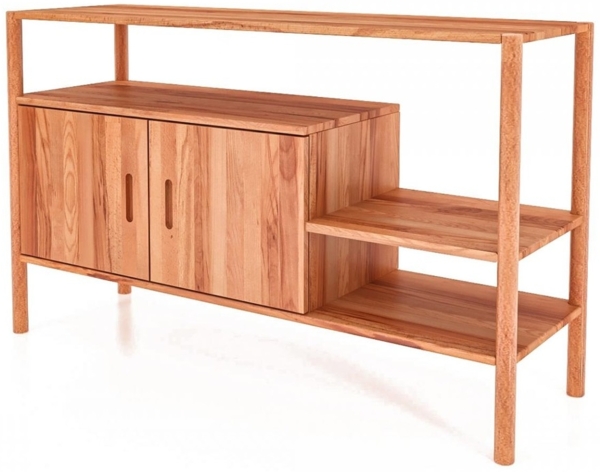 Bücherregal Zola Kernbuche massiv 142x86 cm mit 2 Türen und 2 offenen Fächern