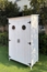 Moderner Gartenschrank "TONI" in Weiß, ideal für die Aufbewahrung von Polsterauflagen und Gartengeräten. Mit den Maßen 118 x 70 x 190 cm (L x B x H) bietet dieser dekorative Schrank zahlreiche Ablagemöglichkeiten und überzeugt durch sein ansprechendes Design mit zwei großen Bullaugen. Die wasserdichte Dachpappe schützt Ihre Utensilien vor Regen, während die Neigung im Dachbereich für einen optimalen Wasserablauf sorgt.