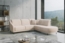 CAVADORE Ecksofa Blue vereint modernes Design mit praktischen Features. Dieses trendige L-Form Sofa in Beige bietet eine motorische Vorziehsitzfunktion, eine Kopfteilverstellung und einen Klapptisch. Der integrierte USB-Anschluss sorgt für zusätzlichen Komfort. Die hochwertige Wellenunterfederung und der langlebige PUR-Schaum garantieren einen angenehmen Sitzkomfort. Das Sofa ist rückseitig echt bezogen und kann frei im Raum platziert werden.