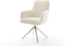 Drehstuhl Heira-Flex mit Armlehnen aus weichem Teddystoff in elegantem Beige. Das breite Kreuzgestell aus handgebürstetem Edelstahl sorgt für Stabilität und eine ansprechende Optik. Mit einer sanften Wippfunktion und hochwertiger Polsterung aus Taschenfederkern bietet dieser Stuhl ausgezeichneten Sitzkomfort. Die Maße betragen ca. 63 x 64 x 95 cm, mit einer Sitzhöhe von ca. 52 cm. Ideal für geschmackvolle Essbereiche.