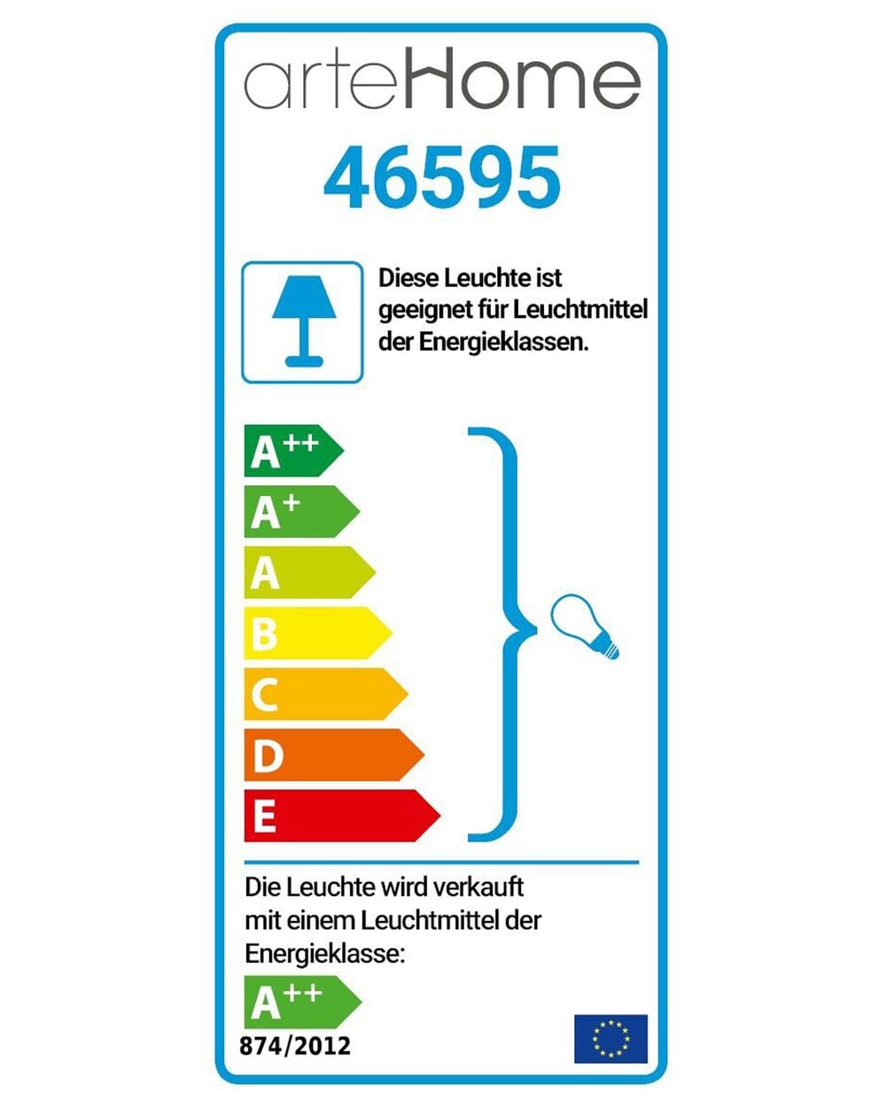 Zusatzinformationen: Diese Leuchte ist geeignet für Leuchtmittel der Energieklassen A bis G auf einer Skala von A (sehr effizient) bis G (weniger effizient). Geeignet für: LED Leuchtmittel, Eco-Halogen Leuchtmittel, Energiesparleuchtmittel. Die Stromkabel dürfen nur von einem qualifizierten Elektriker angepasst werden.