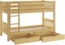 Massivholz-Kinderstockbett aus Kiefer mit einer Liegefläche von 90x200 cm. Das Bett bietet eine hohe Absturzsicherung und ist für Kinder ab 4 Jahren geeignet. Es kann leicht in zwei Einzelbetten umgebaut werden. Die stabile Konstruktion hat eine Dauerbelastung von ca. 100 kg (unten) und 80 kg (oben). Die Holzoberflächen sind fein geschliffen und transparent lackiert.