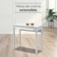 Der ASTIMESA ausziehbare Küchentisch ist die ideale Lösung für kleinere Räume. Mit einem kompakten Maß von 80x40 cm und der Möglichkeit, auf 80x60 cm zu erweitern, bietet er Flexibilität und Funktionalität. Das moderne Design mit einem Gestell und Flügel aus Aluminium sowie einer weißen Glasplatte passt sich mühelos jedem Einrichtungsstil an. Der Tisch lässt sich platzsparend zusammenklappen und ist perfekt für den täglichen Gebrauch oder zusätzliche Gäste.