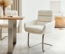 Der Schwingstuhl Abelia-Flex mit Armlehnen in Bouclé Weiß und flachem Edelstahlgestell bietet eleganten Sitzkomfort für Ihren Essbereich. Das hochwertige Bouclé-Material in warmem Weiß verleiht dem Stuhl eine stilvolle Optik. Mit typischer Freischwingerform und handgebürstetem Edelstahlgestell ist er robust und edel.