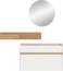 Garderobe mit System: 3 tlg. Garderoben Set Drive in Weiß und Artisan Oak Nb, besteht aus: 1x Schuhkommode, 1x Hängeregal, 1x Spiegel. Funktionalität: Mit großzügigem Stauraum für Kleidung, Schuhe und andere Alltagsgegenstände bietet das Set eine praktische Lösung zur Organisation und Aufbewahrung, wodurch sie Funktionalität in den Raum bringt. Zeitloses Design: Unsere Garderobenmöbel sind zeitlos, modern und pflegeleicht. Die einfache Montage und die pflegeleichte Oberfläche sorgen für eine unkomplizierte Handhabung und langlebige Qualität. Nachhaltige Produktion: Zertifiziert durch FSC stehen wir für verantwortungsvolle Waldwirtschaft. Alle Möbel entsprechen den Anforderungen des Produktsicherheitsgesetzes. Hinweise: Hochwertige Materialien garantieren Langlebigkeit. Die strapazierfähigen Oberflächen sind leicht zu reinigen. Lieferung erfolgt zerlegt, ist teilweilse in mehreren Paketen verpackt und ohne Dekorationsartikel.