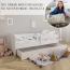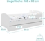 Das Kinderbett 160x80 cm mit Matratze und Schublade bietet Ihnen und Ihrem Kind eine praktische und sichere Schlafmöglichkeit. Das Bett ist aus hochwertigem Holzmaterial gefertigt, das stabil und kratzfest ist. Es wird mit einer passenden Matratze, einem Lattenrost und einer Unterbettschublade geliefert. Der abnehmbare Rausfallschutz und die abgerundeten Kanten sorgen für optimale Sicherheit, damit Ihr Kind unbesorgt spielen und träumen kann. Die Unterbettschublade lässt sich dank ihrer Gummirollen leicht herausziehen, ohne den Boden zu beschädigen.