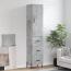 Das Highboard in Betongrau ist ein elegantes Möbelstück, das Ihrer Einrichtung einen stilvollen Akzent verleiht. Hergestellt aus hochwertigem Holzwerkstoff, bietet es mit seinen Abmessungen von 34,5 x 34 x 180 cm viel Stauraum für eine organisierte Aufbewahrung. Die praktische Tür ermöglicht es, Kleinigkeiten diskret zu verstauen. Stabile Metallfüße sorgen für eine ansprechende Optik und zusätzliche Stabilität. Bitte beachten Sie, dass das Highboard mit der mitgelieferten Wandhalterung gesichert werden sollte.