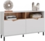 Die Kommode Marelle in Weiß/Artisan kombiniert elegantes Design mit praktischer Funktionalität. Mit den Maßen 140 x 81,3 x 38 cm bietet sie ausreichend Stauraum für Kleidung und Accessoires. Gefertigt aus 16 mm Spanplatte und mit einer Melaminharzbeschichtung versehen, ist sie sowohl robust als auch stilvoll. Die Außenfüße aus Metall und der Mittelfuß aus Kunststoff sorgen für Stabilität. Ein ideales Möbelstück, das jedem Raum Charme verleiht.