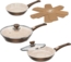 - Set bestehend aus: 1 x Pfanne 20 cm, 1 x Pfanne mit Deckel 24 cm, 1 x Pfanne mit Deckel 28 cm, 2 x Einleger