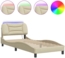 Das Bettgestell "Hvar" in Creme (80 x 200 cm) ist eine stilvolle Ergänzung für Ihr Schlafzimmer. Gefertigt aus atmungsaktivem und langlebigem Stoff, bietet es mit seinen Sperrholzlatten eine optimale Matratzenunterstützung. Das moderne, wellenförmige Design und die bunten LED-Leuchten setzen Akzente und schaffen eine einladende Atmosphäre. Das Kopfteil sorgt für hervorragende Unterstützung beim Sitzen.