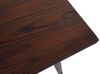 Dieser Küchentisch besticht durch sein edles Design und wird überall zum Hingucker. Die klare Maserung des dunklen Ulmenholzes passt perfekt zu dem schwarzen Stahl-Gestell und rundet die gesamte Optik dieses Holztisches ab.