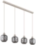 Diese stilvolle 4-flammige Hängeleuchte vereint modernes Design mit besonderen Details. Die rauchfarbenen Glaskörper in Dellenstruktur erzeugen stimmungsvolle Lichtspiele, während das matt beige Metallgestell und die Textilkabel eine warme Ausstrahlung verleihen. Mit vier E27-Fassungen ermöglicht die Leuchte eine flexible Lichtgestaltung. Die Abmessungen von 120 x 14 x 89 cm machen sie ideal für längere Esstische oder offene Wohnküchen.