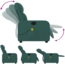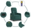Lehnen Sie sich zurück und entspannen Sie sich in diesem äußerst bequemen Massage-Relaxsessel in dunkelgrünem Stoff. Mit einer manuellen Liegefunktion, die eine maximale Neigung von 135 Grad ermöglicht, und einer 6-Punkt-Vibrationsmassage bietet dieser Sessel ein unvergleichliches Sitzerlebnis. Der stabile Rahmen aus Holz und Metall sorgt für Langlebigkeit, während die praktische Seitentasche für zusätzlichen Komfort sorgt.