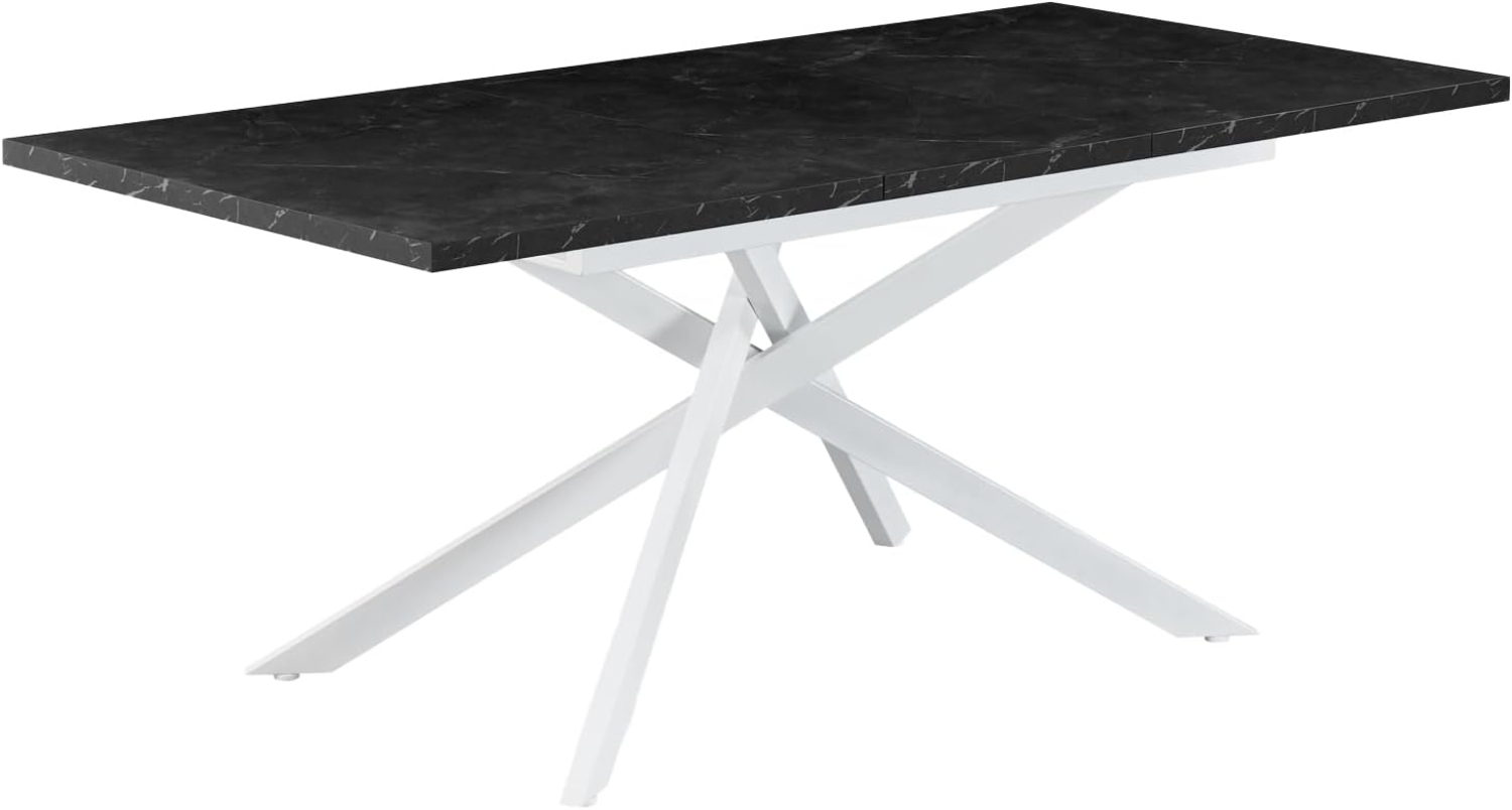 Präsentieren Sie mit dem B&D home Esstisch BEA einen stilvollen Akzent in Ihrem Zuhause. Dieser ausziehbare Tisch im modernen Industrial Design bietet Platz für 4-6 Personen und lässt sich von 120 cm auf 160 cm erweitern. Die Tischplatte aus MDF mit 3D-Furnier in Beton Optik und die pulverbeschichteten Metallbeine sorgen für Stabilität und Eleganz. Mit einer Höhe von 77,5 cm genießen Sie bequemen Esskomfort.