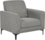 Gemütlicher Sessel FENES in Grau mit hohen Armlehnen und schwarzen Metallfüßen. Der Sessel bietet einen hohen Sitzkomfort durch die tiefe Sitzfläche, hohe Rückenlehne und dicke Polsterauflage. Die schwarzen Metallbeine sind mit Schutzkappen ausgestattet, was ein einfaches Verschieben ermöglicht. Ideal für jeden Wohnstil.