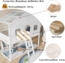 EN747 zertifizierte Hochbett: Dieses Hochbett mit EN-747-Zertifizierung ist ein Produkt, das streng auf die Einhaltung der europäischen Sicherheitsnormen geprüft und bewertet wurde. Dieses Bett wurde strengen Tests unterzogen, um die strukturelle Solidität des Bettes und die Qualität der verwendeten Materialien zu gewährleisten. Wir empfehlen Ihnen, die Gebrauchsanweisung zu befolgen, um die Sicherheit der Kinder bei der Benutzung des Hochbettes zu gewährleisten.
