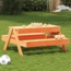 Der vidaXL Picknicktisch mit Sandkasten für Kinder in Wachsbraun ist die perfekte Lösung für Outdoor-Aktivitäten. Hergestellt aus massivem Kiefernholz, bietet er eine robuste Struktur und ist ideal für Kinder im Alter von 2 bis 8 Jahren. Die geräumigen Sitzflächen sorgen für Komfort und gute Belüftung. Die abnehmbare Tischplatte verwandelt den Tisch schnell in einen Sandkasten, was für zusätzlichen Spielspaß sorgt.