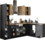 Moderne L Eckküche in mattem Schwarz mit einer Arbeitsplatte in Artisan-Eiche Optik. Diese geräumige Küche bietet viel Stauraum durch großzügige Fächer für Ihre Küchenutensilien und Vorräte. Die Montage ist einfach und schnell, ideal für Anfänger. Die Küche wird ohne Küchengeräte geliefert und kann individuell bestückt werden.