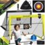 Das Set enthält zwei Fußballtore, eine Tragetasche, vier Bodenheringe pro Tor sowie Anti-Rutsch-Klipps für sicheren Stand auf glatten Flächen. Ergänzt wird das Zubehör durch sechs Hütchen für Dribbel- und Laufübungen sowie eine Zielscheibe zur Verbesserung der Schussgenauigkeit. Die Tore eignen sich für Kinder ab 4 Jahren und bieten vielseitige Spiel- und Trainingsmöglichkeiten – für stundenlangen Fußballspaß zuhause oder unterwegs.