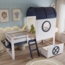 Passende Maße und Farbgestaltung: Mit den Maßen 90x200cm (ideal für Kinder) und in der Farbkombination Weiß + Dunkelblau gehalten, integriert es sich gut in verschiedene Kinderzimmerdekorationen.