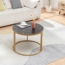 Dieser stilvolle Couchtisch Aulum mit einer runden Tischplatte aus schwarzem Marmor und einem goldenen Metallgestell bringt ein außergewöhnliches Flair in Ihr Wohnzimmer. Mit den Maßen 50 x 70 cm bietet er eine praktische und elegante Lösung für jeden Wohnraum. Der Tisch überzeugt durch seine robuste Bauweise und den einfachen Aufbau, sodass Sie ihn schnell genießen können.