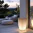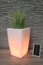 Moderner LED Blumenkübel mit einer Höhe von 50 cm und einer Breite von 30 cm. Der robuste Pflanzkübel aus Polyethylen Kunststoff ist mit einer RGB LED-Beleuchtung ausgestattet, die per Fernbedienung in 16 Farben und 4 Farbwechselprogrammen eingestellt werden kann. Das 4W Solarpanel lädt den 4000 mAh Akku tagsüber, sodass die Leuchte bei Dämmerung automatisch aktiviert wird.