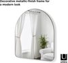 Der gewölbte Wandspiegel Hubba von Umbra kombiniert modernes Design mit Funktionalität. Mit einer großen Spiegelfläche von 86 x 91 cm reflektiert er sowohl natürliches als auch künstliches Licht, wodurch er dunkle Räume aufhellt. Sein dekorativer Rahmen in Titan verleiht jedem Raum einen eleganten Akzent. Der Spiegel kann sowohl an der Wand befestigt als auch gegen die Wand gelehnt werden.