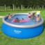 Der Bestway Fast Set Aufblasbare Swimmingpool mit einem Durchmesser von 457 cm und einer Höhe von 122 cm bietet Badespaß für die ganze Familie. Die verstärkten Wände aus Tritech, einem robusten 3-lagigen Material, garantieren Langlebigkeit. Der Pool lässt sich schnell aufstellen, indem Sie den oberen Ring aufpumpen und ihn mit Wasser füllen. Eine Filterpumpe sorgt für sauberes Wasser, während die Poolleiter den Ein- und Ausstieg erleichtert.