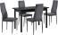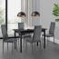 Dieser stilvolle Esstisch Honningsvåg in Schwarz bietet mit seinen kompakten Maßen von 120 x 60 x 75 cm Platz für bis zu 4 Personen. Die strapazierfähige Tischplatte aus MDF mit Melamin Furnier und die pulverbeschichteten Stahlbeine garantieren Stabilität und Langlebigkeit. Ergänzt wird das Set durch 4 gemütliche Polsterstühle in Grau, die mit einer Textiloberfläche aus 100% Polyester ausgestattet sind.