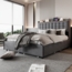 Dieses moderne Polster-Doppelbett mit den Maßen 140x200 cm bietet Komfort und Funktionalität. Der elegante graue Leinenstoff ist hautfreundlich und atmungsaktiv. Ausgestattet mit einem integrierten USB-Anschluss und vier großzügigen Stauraum-Schubladen, ist es ideal für Ihr Schlafzimmer. Die stabile Konstruktion aus Holzlatten und Metallklammern gewährleistet eine Tragfähigkeit von bis zu 300 kg.