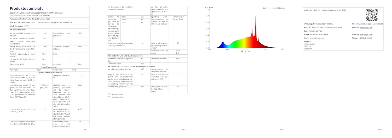 Eglo 11933 Leuchtmittel LED E27 11W L:11. 6cm Ø:6cm 3000K