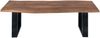 Stilvolle Sitzbank aus massivem Akazienholz mit echter Baumkante. Mit einer Länge von ca. 160 cm, einer Tiefe von 42 cm und einer Höhe von 47 cm bietet die Bank Platz für 2 bis 3 Personen. Das schwarz lackierte U-förmige Metallgestell sorgt für hohe Standfestigkeit. Jedes Stück ist ein Unikat mit natürlicher Optik und attraktiver Maserung, das zudem ein gesundes Raumklima fördert.
