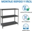Das Simonrack Schwerlastregal ist ein robustes Metallregal mit den Abmessungen 90 x 110 x 40 cm (Höhe x Länge x Breite). Es bietet drei Regalböden mit einer Tragfähigkeit von 200 kg pro Regalboden. Die schraubenlose Montage ermöglicht eine einfache und schnelle Installation. Das Regal ist ideal für Garagen, Werkstätten und Lagerhäuser und überzeugt durch seine Stabilität und Langlebigkeit.