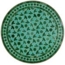 Ein marokkanischer Mosaiktisch, Ø 60 cm, der mit einem kunstvollen Halbmondmuster verziert ist. Die handgefertigten Zellige-Fliesen in Smaragd- und Minztönen bringen Ruhe und Eleganz in Ihren Innen- oder Außenbereich. Die massive Mosaikplatte wiegt ca. 18 kg und liegt sicher auf einem geschwungenen, mit Klarlack versiegelten Metallgestell. Ideal für Terrasse, Garten oder Balkon, setzt dieser Tisch stilvolle Akzente und sorgt für marokkanisches Flair.