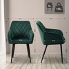 Der Esszimmerstuhl Monett vereint Komfort und Stil in einem ansprechenden Design. Mit einem gepolsterten Samtbezug in Grün und einem stabilen Vierfußgestell aus mattschwarzem Metall bietet dieser Stuhl eine bequeme Sitzgelegenheit für Küche, Esszimmer und Wohnbereich. Die großzügige Polsterung und die Rückenlehne sorgen für angenehmes Sitzen, auch über längere Zeiträume.