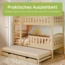 Ein besonderes Highlight des Bettes ist das praktische Rausziehbett mit vollwertigem Lattenrost. Damit sind Sie jederzeit auf Übernachtungsgäste vorbereitet und bieten jedem eine bequeme Nacht. Der Rausfallschutz sorgt dafür, dass Ihr Kind oben sicher schläft, und wir legen sogar einen zweiten Rausfallschutz gratis dazu, um unten zusätzliche Sicherheit zu gewährleisten.