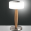 Die LED Tischleuchte Elea von Fabas Luce vereint minimalistisches Design mit funktionaler Eleganz. Mit einer Höhe von 290 mm und einem Durchmesser von 150 mm ist sie ideal für jeden Tisch. Die Kombination aus satiniertem Nickel, Holz und geblasenem Glas sorgt für einen stilvollen Akzent in Ihrem Wohnraum. Dank des integrierten Touchdimmers können Sie die Helligkeit nach Ihren Wünschen anpassen. Die energieeffiziente LED-Technik mit 8 W und einem Lichtstrom von 860 lm bei einer Farbtemperatur von 3000 K bietet angenehmes Licht.