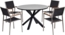 Runde Essgruppe für 4 Personen in Grau, bestehend aus einem Aluminiumtisch mit einer Keramikglasplatte in Marmoroptik und 4 stabilen Edelstahlstühlen mit Stoffbespannung. Diese moderne Garnitur ist ideal für Garten und Terrasse und bietet sowohl Komfort als auch Langlebigkeit. Die UV-, wasser- und rostbeständigen Materialien garantieren eine lange Lebensdauer. Die platzsparend stapelbaren Stühle und die einfache Montage machen dieses Set zur perfekten Wahl für gesellige Zusammenkünfte.