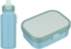 Das Mepal CAMPUS Lunchset 2-teilig in den Farben Cool Blue und Cool Mint besteht aus einer praktischen Pop-up Trinkflasche und einer Brotdose mit Bento-Einsatz und Gabel. Die auslaufsichere Trinkflasche ist ideal für kleine Kinderhände und ermöglicht ein einfaches Trinken durch Drücken. Die Brotdose bietet Platz für bis zu 4 Butterbrote und ist spülmaschinengeeignet, was die Reinigung erleichtert.