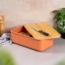 Ein besonderes Highlight ist der Deckel, der gleichzeitig als Schneidebrett dient. Dank der Rillen fängt er Krümel auf und sorgt auch für einen sicheren Halt beim Schneiden. Der Brotkasten ist dank der abgerundeten Innenkanten leicht zu reinigen, was Ihnen wertvolle Zeit spart.