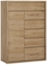 Die Kommode SELMA-129 vereint modernes Design mit praktischer Funktionalität. In heller Eichenoptik und griffloser Ausführung fügt sie sich harmonisch in Ihr Wohnambiente ein. Mit 6 Schubkästen und einer Drehtür bietet sie ausreichend Stauraum und ist ideal für kleine Räume.