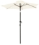 Die leichte Bedienung per Handkurbel ermöglicht ein problemloses Öffnen und Schließen des Marktschirmes. Das dunkelgraue Gestell aus Stahl beinhaltet ein 38 mm dickes Standrohr, welches sechs Streben miteinander verbindet. Der Schattenspender überzeugt mit einem Schirm, welcher aus 100% Polyester besteht. Durch ein verchromtes Knick-Gelenk, welches kinderleicht durch einen Druckknopf zu bedienen ist, lässt sich der Marktschirm individuell einstellen und schützt somit auch vor schräg einfallenden Sonnenstrahlen. Dazu kommt ein UV-Schutz von 50. Der air-vent ist für das Entweichen von leichten Windstößen verantwortlich und sorgt für einen festen Stand. Es kann zusätzlich ein Kreuzständer erworben werden. Es ist dringend zu empfehlen den Ständer mittels der vorgefertigten Bohrungen zu verankern.