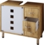 Der VCM Waschbeckenunterschrank "Darola" vereint modernes Design mit praktischer Funktionalität. Mit 3 leichtgängigen Schubladen und einer eleganten Mattglastür bietet er reichlich Stauraum für Ihre Badutensilien. Die stabile Verarbeitung und die Holzstruktur-Nachbildung sorgen für Langlebigkeit, während die Designfüße in Aluoptik einen stilvollen Akzent setzen. Die beschichtete Oberfläche macht den Schrank pflegeleicht und unempfindlich gegen Feuchtigkeit.